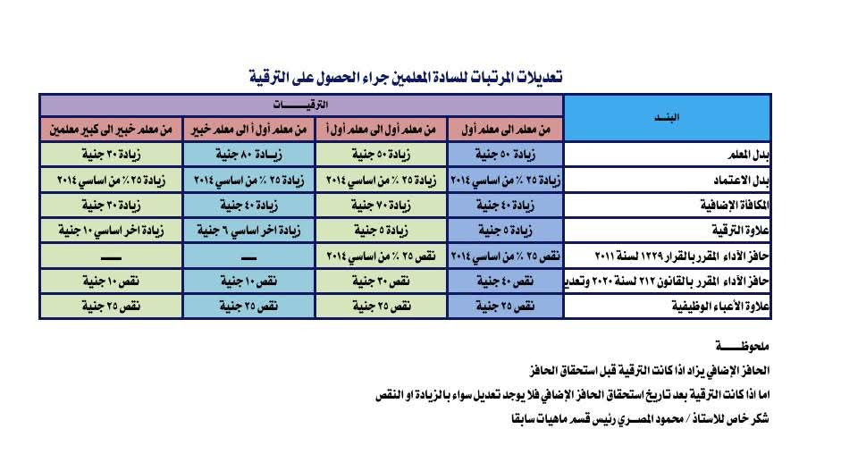 فروق المرتبات بعــــــد الحصول على الترقيــــــــــة للسادة المعلمين