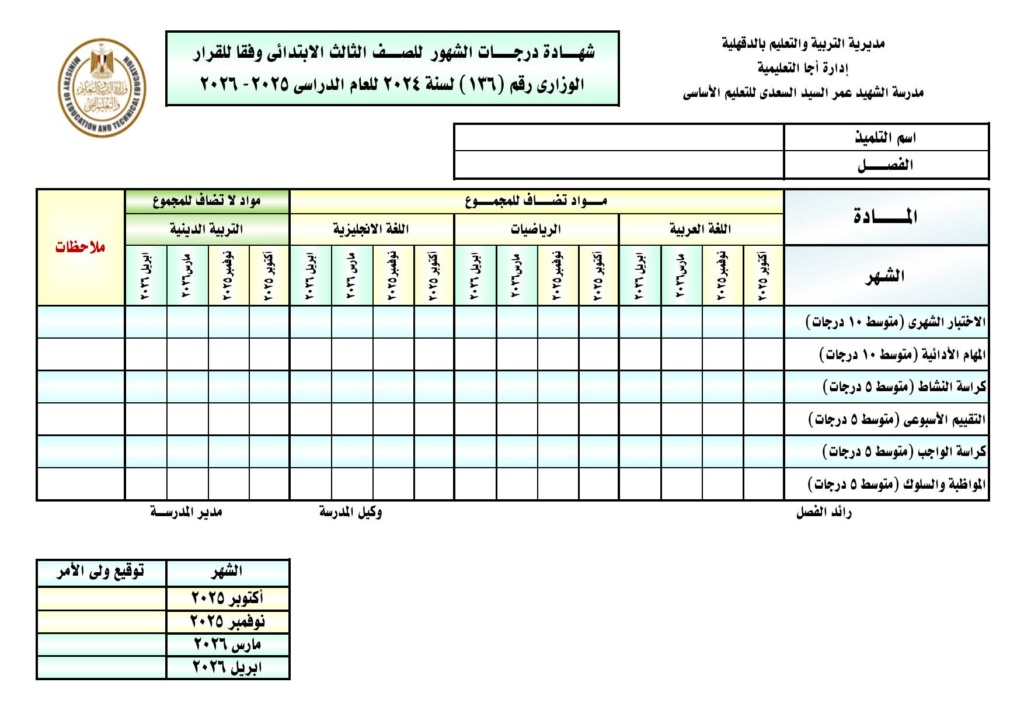 كتب تقييمات الوزارة والأداء الصفي ابتدائي وإعدادي للعام الدراسي،رابط التحميل 2025/2026
