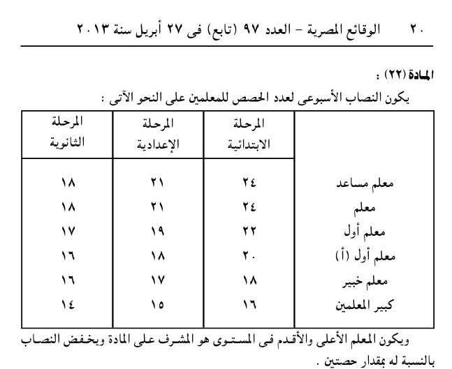 النصاب القانوني للمعلم كاملاً سواء كانت مجمعًا بالمادة الاساسية وحدها