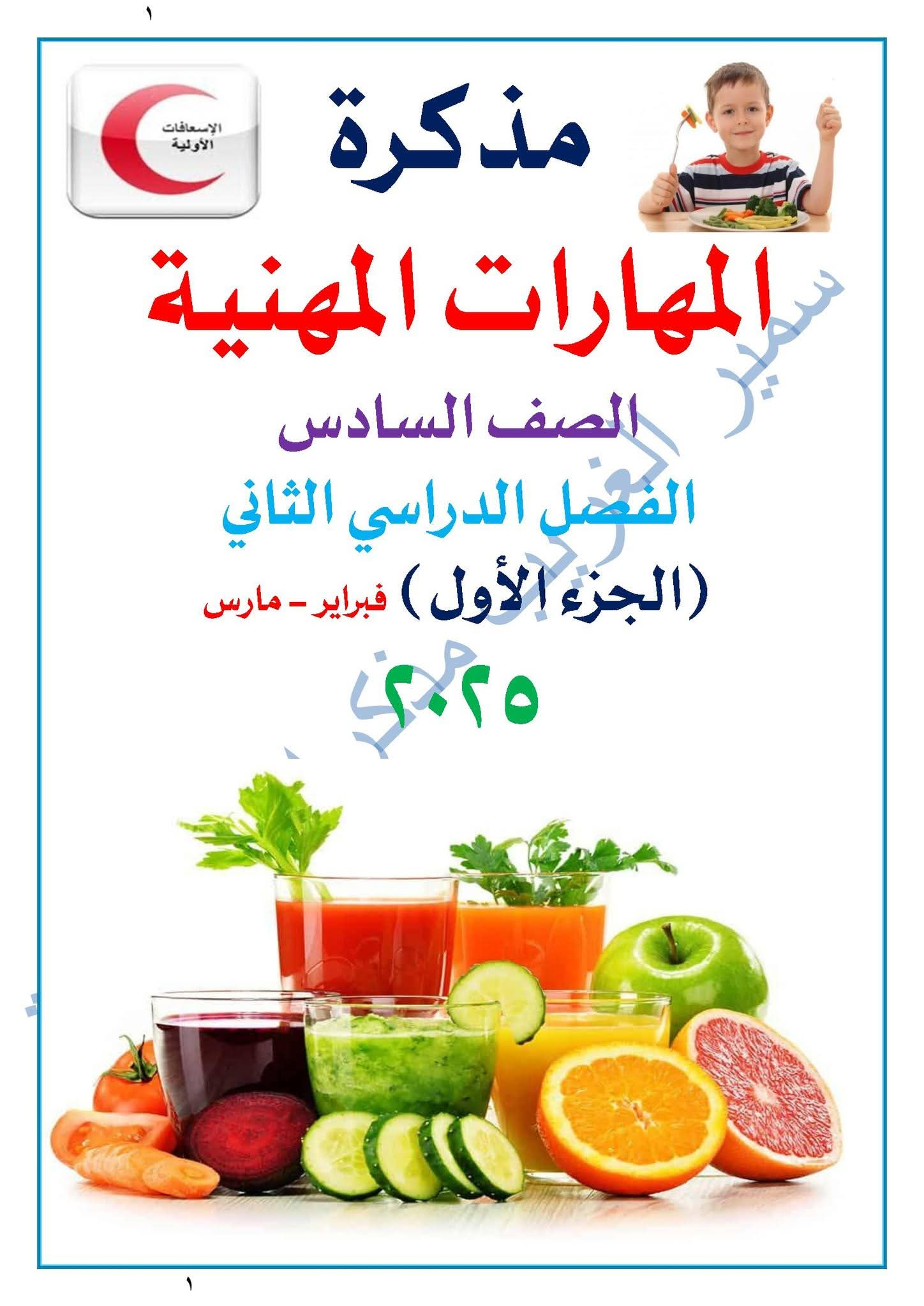 مذكرة المهارات المهنية الصف السادس الترم الأول