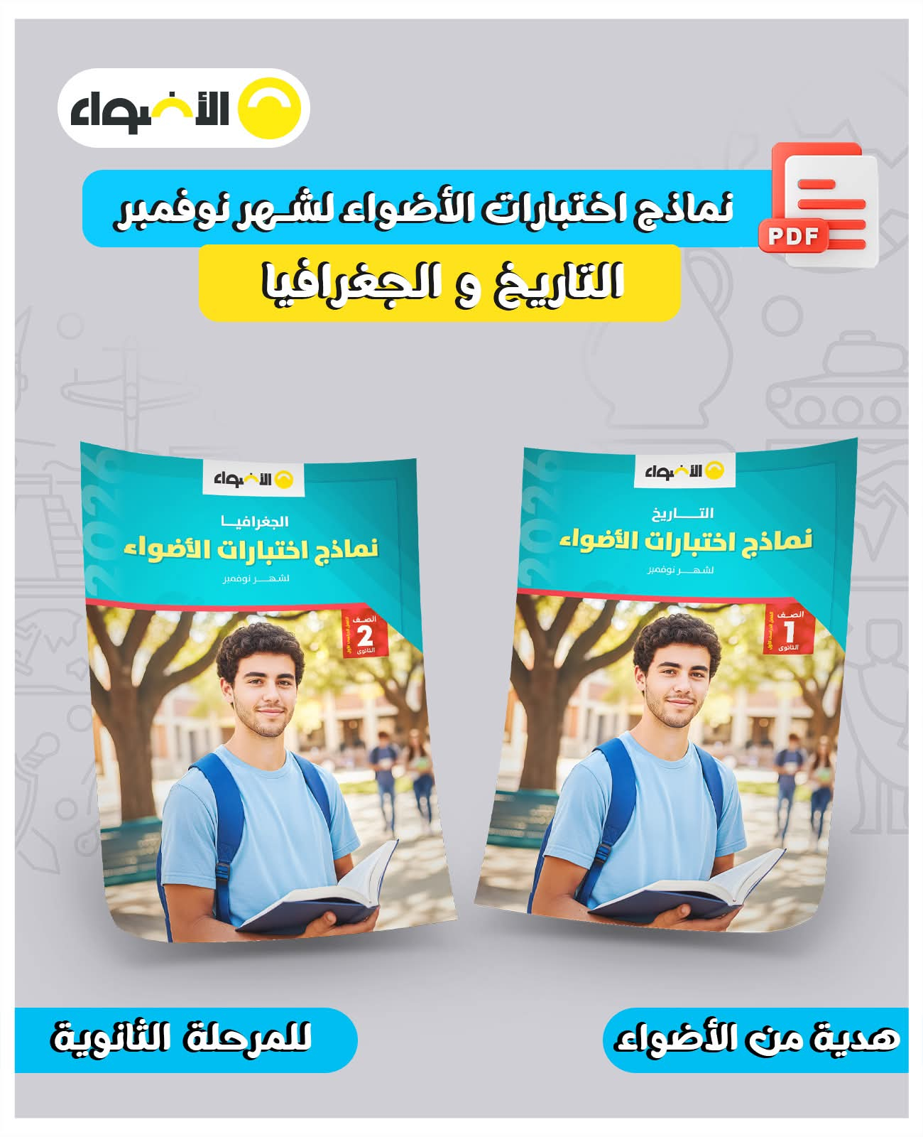 خليك جاهز لامتحانات شهر نوفمبر فى مادة التاريخ والجغرافيا للمرحلة الدراسية الثانوية من نماذج اختبارات الأضواء الشهرية على أحدث مواصفة امتحانية بإجاباتها النموذجية بصيغة الـ PDF مجانًا
