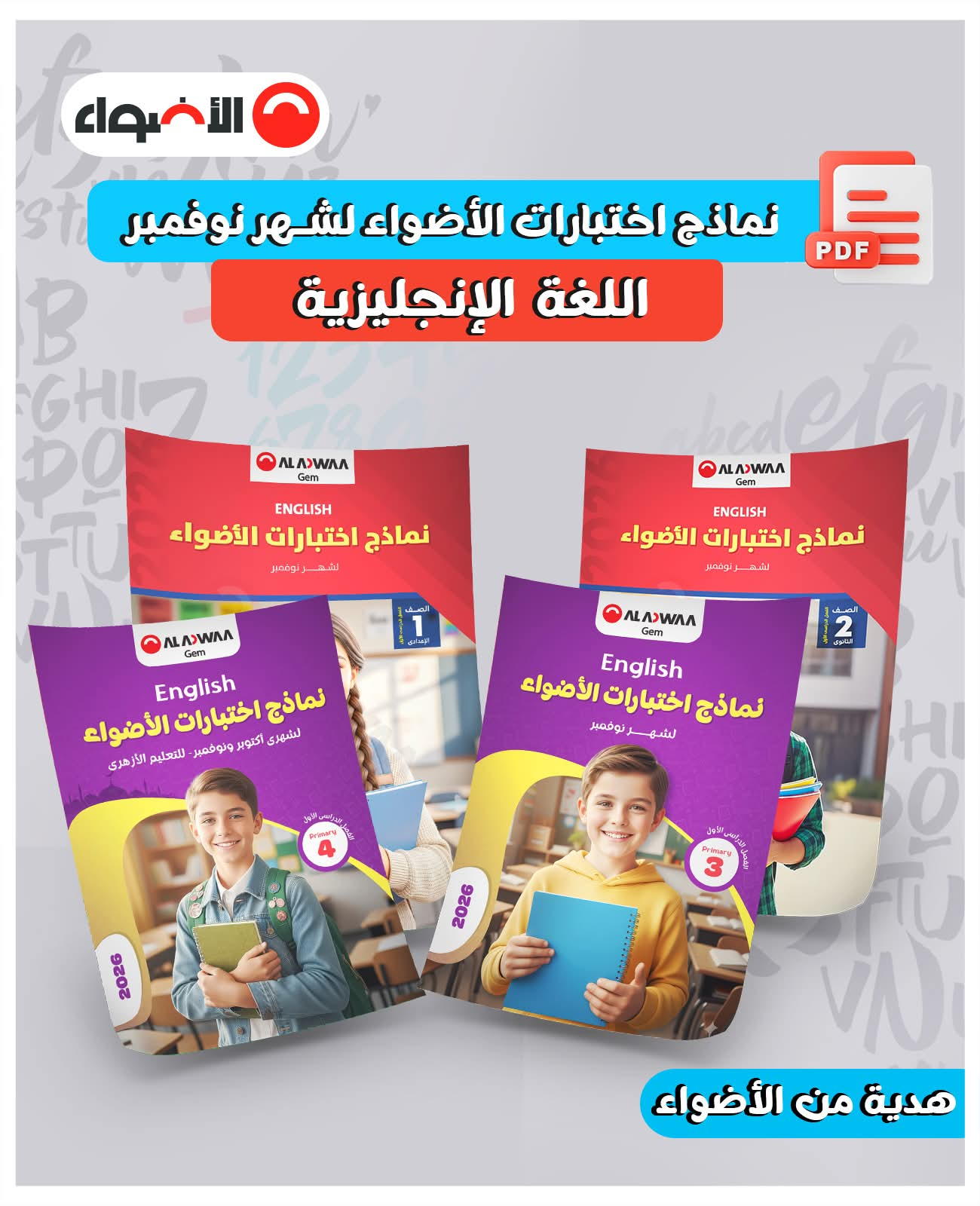 خليك جاهز لامتحانات شهر نوفمبر فى مادة اللغة الإنجليزية لكل المراحل الدراسية من نماذج اختبارات الأضواء الشهرية على أحدث مواصفة امتحانية بإجاباتها النموذجية بصيغة الـ PDF مجانًا
