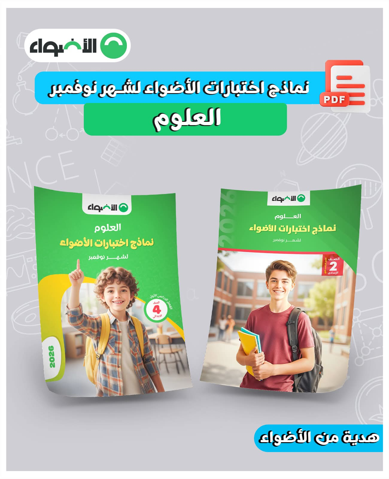 خلي طفلك جاهز لامتحانات شهر نوفمبر فى مادة العلوم للمرحلة الدراسية الابتدائية والإعدادية من نماذج اختبارات الأضواء الشهرية على أحدث مواصفة امتحانية بإجاباتها النموذجية بصيغة الـ PDF مجانًا