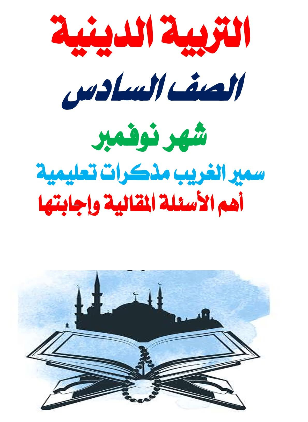 التربية الدينية الإسلامية شهر نوفمبر الصف السادس