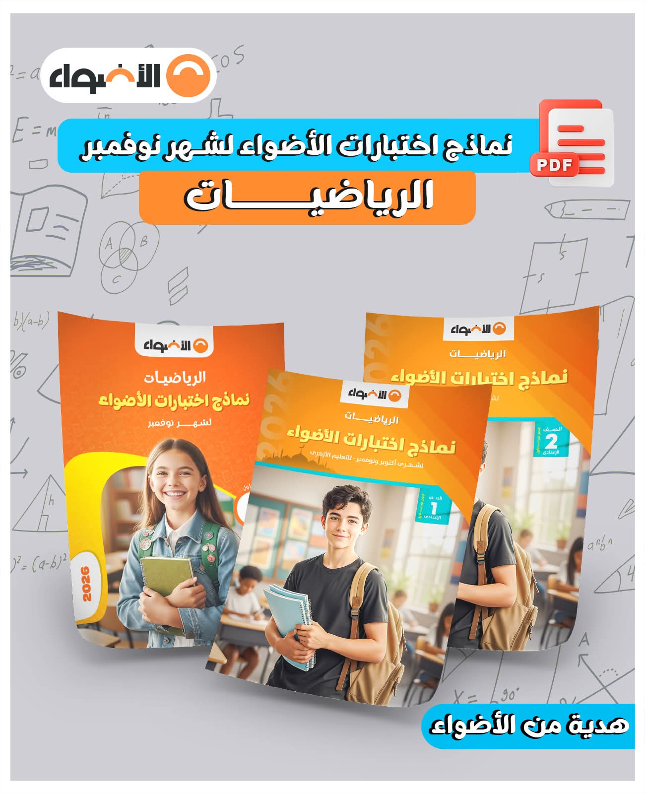 خليك جاهز لامتحانات شهر نوفمبر فى مادة الرياضيات للمرحلة الدراسية الابتدائية والإعدادية من نماذج اختبارات الأضواء الشهرية على أحدث مواصفة امتحانية بإجاباتها النموذجية بصيغة الـ PDF مجانًا